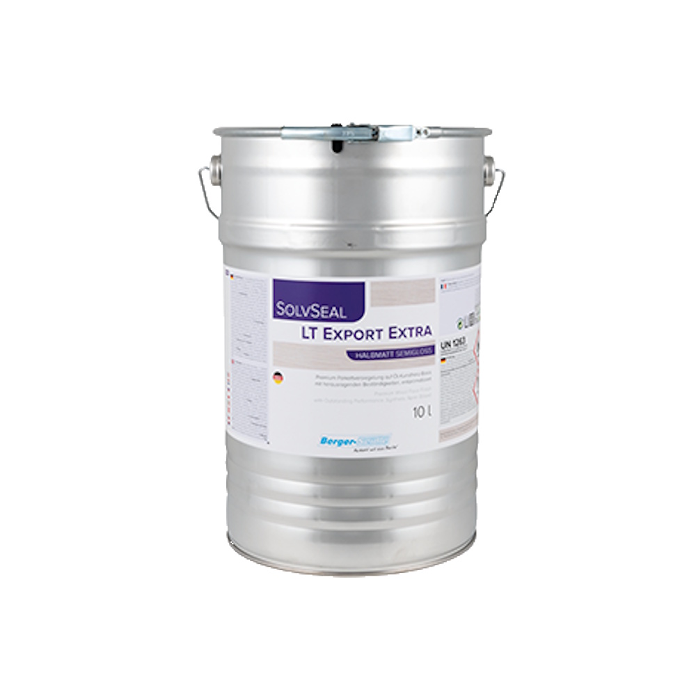 SolvSeal LT Export Extra – tai aukštos kokybės vieno komponento lakas, pagamintas iš modifikuotų natūralių aliejų ir tirpiklių pagrindu. Rišikliai gaminami iš augalinės kilmės žaliavų, todėl tai yra ekologiškesnis pasirinkimas profesionaliam medinių grindų apsaugos sprendimui. Produktas pasižymi plačiu pritaikymu – idealiai tinka net ir sudėtingiems pagrindams, tokiems kaip: kraštiniu būdu klijuotas parketas, neimpregnuotos medinės grindinio dangos ar lentos, parketas su grindiniu šildymu, elastingos (svinguojančios) konstrukcijos sporto salėse.